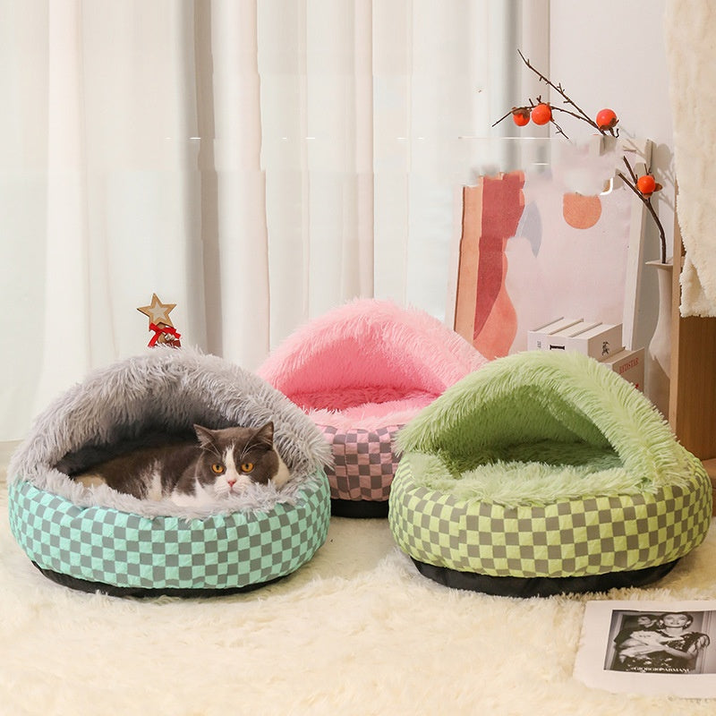 Chequered 2in1 Cat Cave Bed