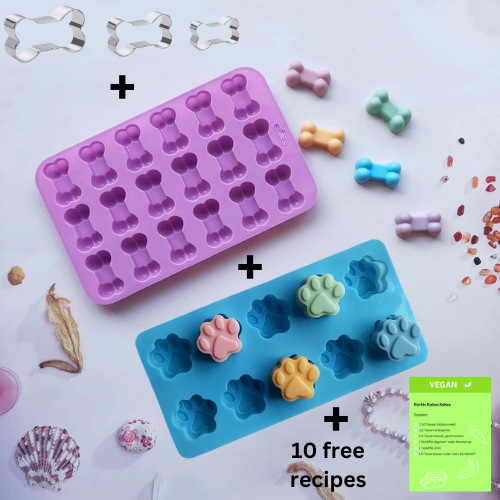 Free Shipping | No Return or Refund Healthy Bites, Happy Paws Treat your furry friend to the finest with our Homemade DIY Dog Treat Kit—a must-have for every pet parent seeking the best for their canine companion. Say goodbye to the uncertainties of store-bought treats and welcome a new era of transparency, taste, and tail-wagging delight. Traditional dog treats often come with a hefty price tag and the uncertainty of undisclosed ingredients. It's a challenge to ensure that our furry companions are getting the best, and sometimes, we're left in the dark about what exactly goes into those store-bought snacks. Enter our Homemade DIY Dog Treat Kit, a solution that not only addresses these concerns but elevates the treat-making experience. This kit includes two premium, non-toxic silicone baking molds, three cookie cutters in various sizes, and a collection of 10 diverse recipes to create treats your loyal companion will savor. Here's why our kit stands out: 💷 Cost-Effective: Save up to 70% compared to buying pre-made treats. 🌈 Transparency: You decide the ingredients; nothing goes in that you don't want. 🍏 Health Focus: No artificial flavors or enhancers—just pure, healthy ingredients. 👅 Taste Sensation: Your dog will notice the difference and absolutely adore these homemade delights. Recipe Variety: Explore five distinct recipe categories - Basic, Vegan, Lactose-Free, Gluten-Free, and Vitamin+ Dogs are remarkably intelligent creatures. They appreciate the effort you put into preparing their food, and it strengthens the bond between you and your beloved pet. By choosing our Homemade DIY Dog Treat Kit, you're not just investing in healthier snacks; you're investing in the happiness and well-being of your four-legged friend. Take a step towards creating unforgettable moments with your canine companion. Show your love through the art of treat-making. Order your Homemade DIY Dog Treat Kit today and discover how crafting these delectable treats together can enhance the joy and connection you share with your furry friend. Don't miss out—place your order now and elevate your pet-parenting experience! 🛍️ Please note: It is important to note that the exact quantities may vary depending on the consistency of the dough. If the dough is too dry, add more water as needed. If it's too sticky, add more flour. Each oven is also different, so monitor the biscuits as they bake to make sure they don't stay in the oven too long. Make sure all ingredients are safe for your dog and consult your vet if you have any concerns. These biscuits should be given in moderation as a treat and not as a staple food.